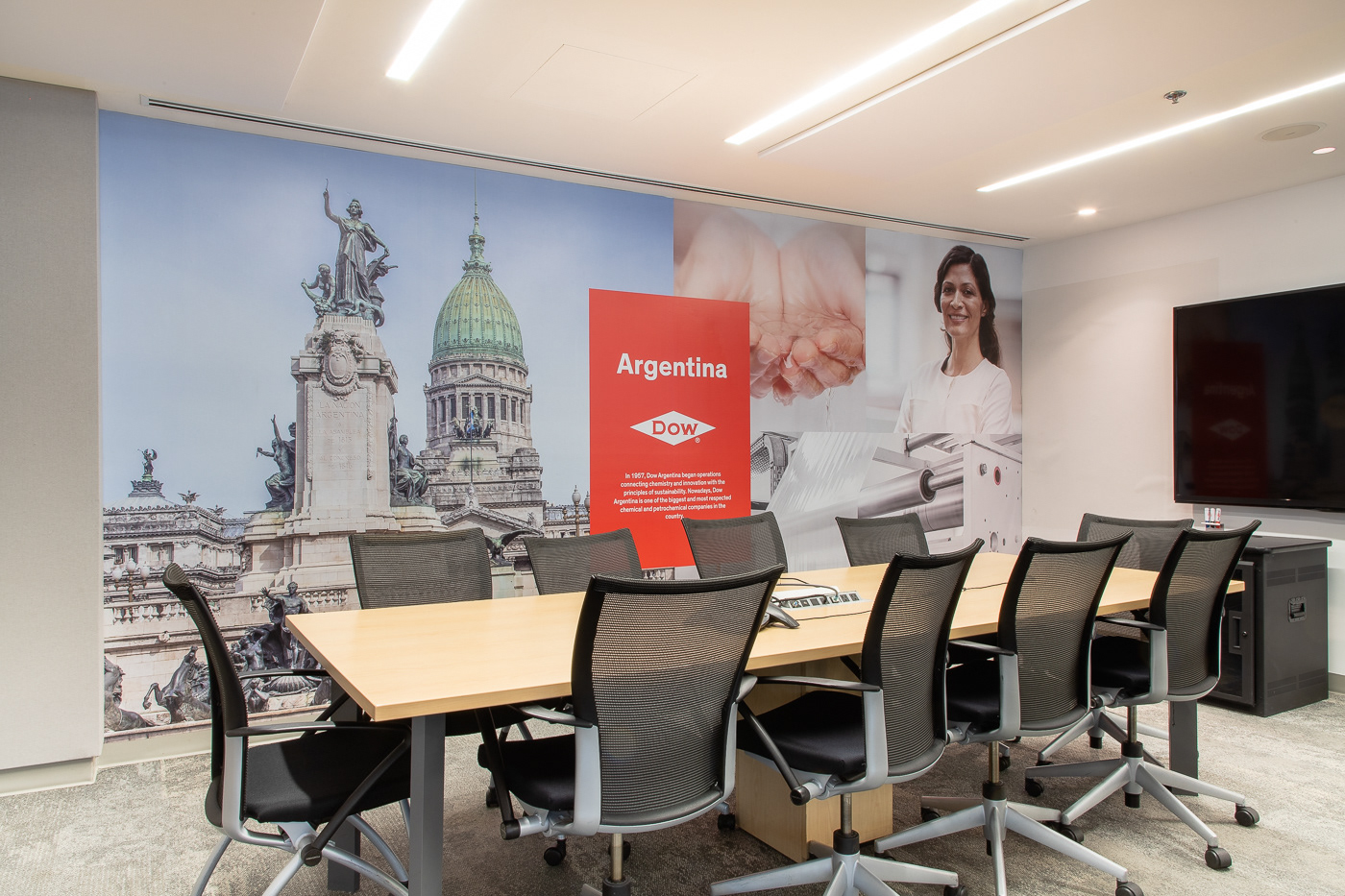Taking inspiration from DOW's global reach, each conference room and phonebooth draws its name and theme from a country in which the company operates.